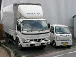 | 運搬にはこの2台。 キャリーは近所様への配達やちょい乗りに、デュトロは 大型荷物や長尺モノ用。左右に開くガルウイング式なので雨で濡れる心配もなく重宝されています。 貨物室は2000x4500mm 4d積み仕様。 |
