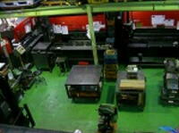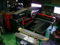 2階からプレスブレーキ現場を見る。 タレパンで加工された板が すぐ曲げ加工に入れます。 |